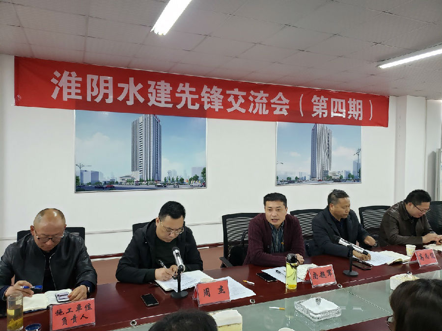 2019年4月29日下午,第四期“淮陰水建先鋒交流會”在通海大廈建設處成功舉辦。公司黨委班子成員、五個支部部分黨員、通海大廈臨時黨支部以及建設處全體成員、2019年入黨積極分子代表、通海大廈建設施工單位負責人參加了會議。